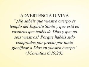 ¿No sabéis que vuestro cuerpo es templo del Espíritu Santo y que está en vosotros que tenéis de Dios y que no sois vuestros Porque habéis sido comprados por precio por tanto glorificar a Dios en vuestro cuerpo (1Corintios 6:19,20).