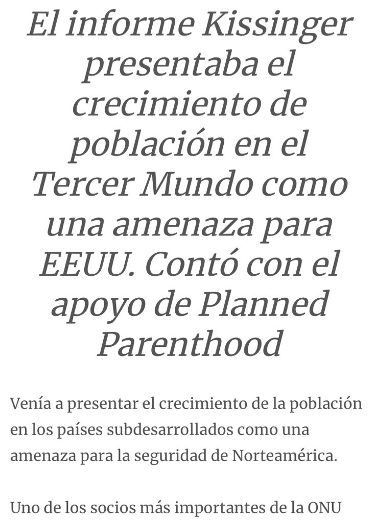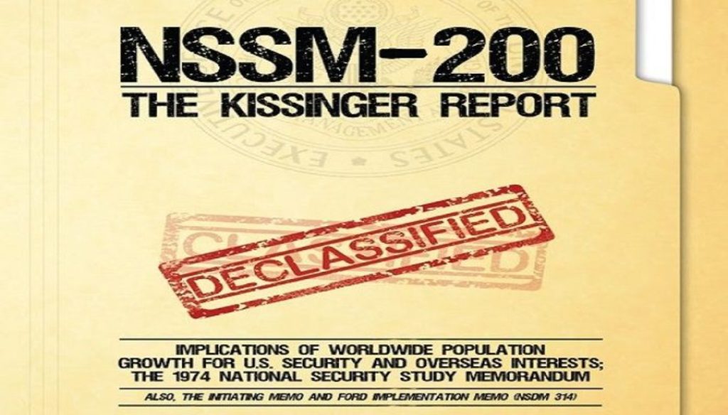 Henry Kissinger, secretario de estado, suscribió el 24 de abril de 1974, el documento titulado “Implicaciones del Crecimiento Poblacional Mundial para la Seguridad de Estados Unidos e Intereses de Ultramar”.