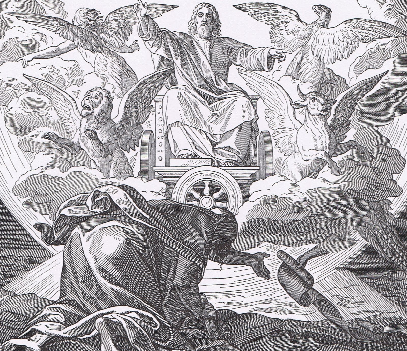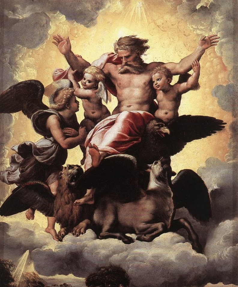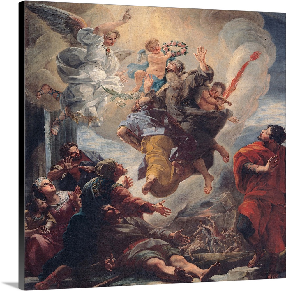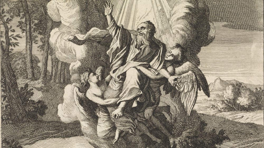 El profeta Elías, el más grande de los profetas después de Moisés, y antes del nacimiento de San Juan Bautista. En el segundo Libro de los reyes, se relata “Esto pasó cuando Yahvéh arrebató a Elías en el torbellino al cielo. Elías y Eliseo partieron de Guilgal. (…) Tomó Elías su manto, lo enrolló y golpeó las aguas, que se dividieron de un lado y de otro, y pasaron ambos a pie enjuto. Cuando hubieron pasado, dijo Elías a Eliseo: Pídeme lo que quieras que haga por ti antes de ser arrebatado de tu lado. Dijo Eliseo: Que tenga dos partes de tu espíritu. Le dijo: Pides una cosa difícil; si alcanzas a verme cuando sea llevado de tu lado, lo tendrás; si no, no lo tendrás.