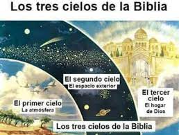 Y es que en la Biblia se nos mencionan la existencia de clases de cielos: El primer cielo es el cielo atmosférico están las nubes y se genera la lluvia, (Gn 7,11). El segundo cielo es el espacio situado encima del primer cielo y es el lugar donde su ubican los planetas y las estrellas, (Sal 8,3). Y el tercer Cielo está por encima de los dos anteriores, donde está situado el trono de Dios, (Sal 11,4).