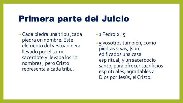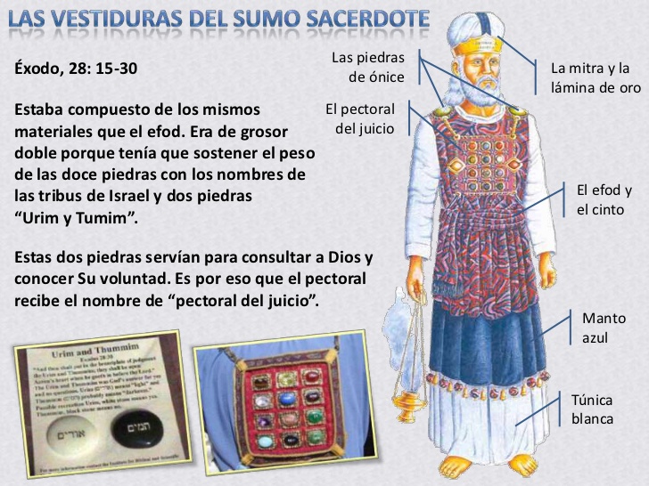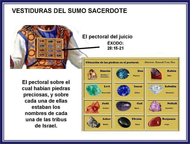 En el Joshém, o pectoral del Juicio del Sumo Sacerdote hay una piedra por cada una de las 12 tribus de Israel, que será lucido por el mesías en el juicio de las Naciones. 28:15-21