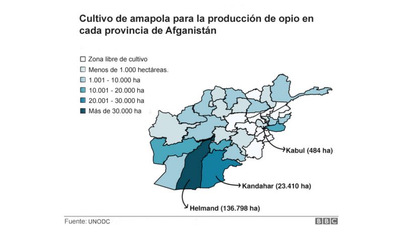 Es la guerra más larga en la historia de EE.UU. dadas las ganancias que genera la producción de la heroína y morfina -un derivado del opio- utilizadas para financiar al Talibán y a otros grupos Musulmanes como Estado Islámico y al Qaeda. Es el país en el que más heroína produce en el mundo el 84% de la producción mundial. Cuando Estados Unidos invadió Afganistán, en octubre de 2001, las amapolas crecían en 74.000 hectáreas, ahora hay 328.000 hectáreas de cultivo, equivalentes a 300.000 canchas de futbol, que generan 600.000 empleos directos permanentes, además es epicentro de la producción de metanfetamina, gracias a una planta silvestre que se da por todo Afganistán, la efedra, componente clave de la metanfetamina: la efedrina. Hay más de 300 laboratorios de efedrina en un solo distrito en el oeste de Afganistán, Bakwa, despachada al mundo a través de Sri Lanka, y el Mar Arábigo. Hasta Europa.