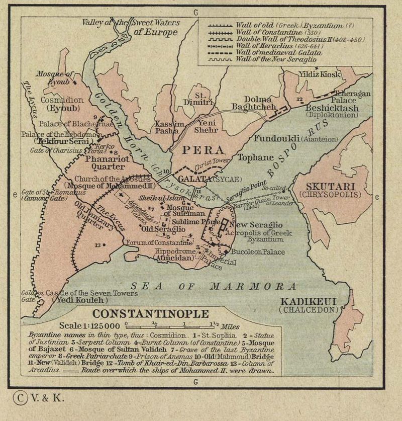 En 1453 se tomaron Constantinopla. Convertida en el 330, por Constantino el Grande, en la nueva capital del Imperio romano, debido a su posición estratégica: entre el Cuerno de Oro y el mar de Mármara, en el punto de encuentro de Europa y Asia. Debido a su enormes riquezas, conocida como «la Reina de las Ciudades» la más grande y rica de Europa.
