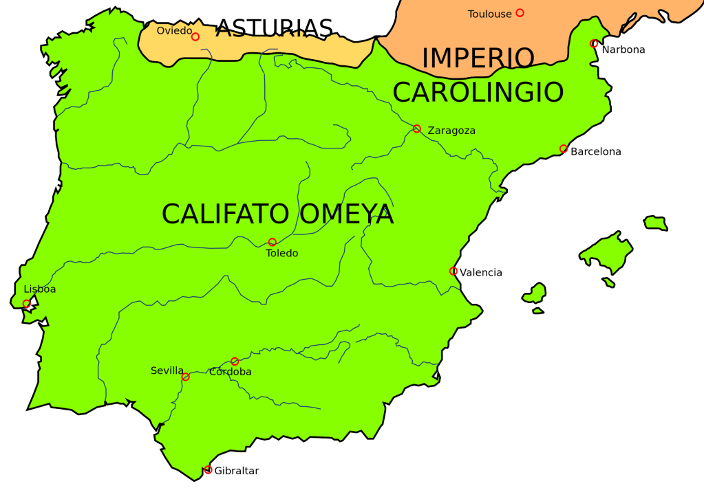 Entre 711 y 716 comienza una conquista árabe de casi ocho siglos en la Península Ibérica, y en 732, cien años después de la muerte de Mahoma, el avance árabe en la Europa Occidental era detenido a las puertas de Francia en la batalla de Poitiers.