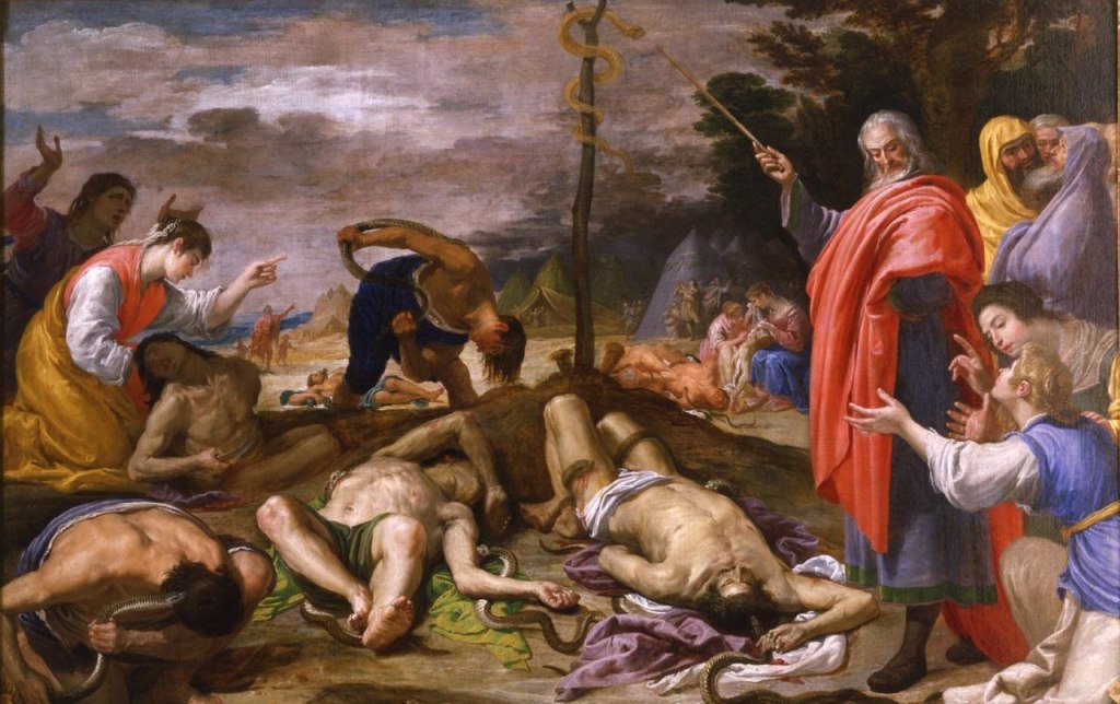 De este modo Dios castiga al pueblo y de paso, prefigura la redención, como dijo Jesús a Nicodemo, “De la misma manera, para escapar de la muerte eterna, bastará mirar confiadamente al Cordero inmolado en la Cruz. Y como Moisés levantó la serpiente en el desierto, así es necesario que el Hijo del Hombre sea levantado, para que todo aquel que en él cree, no se pierda, más tenga vida eterna» (Juan 3:14-15).