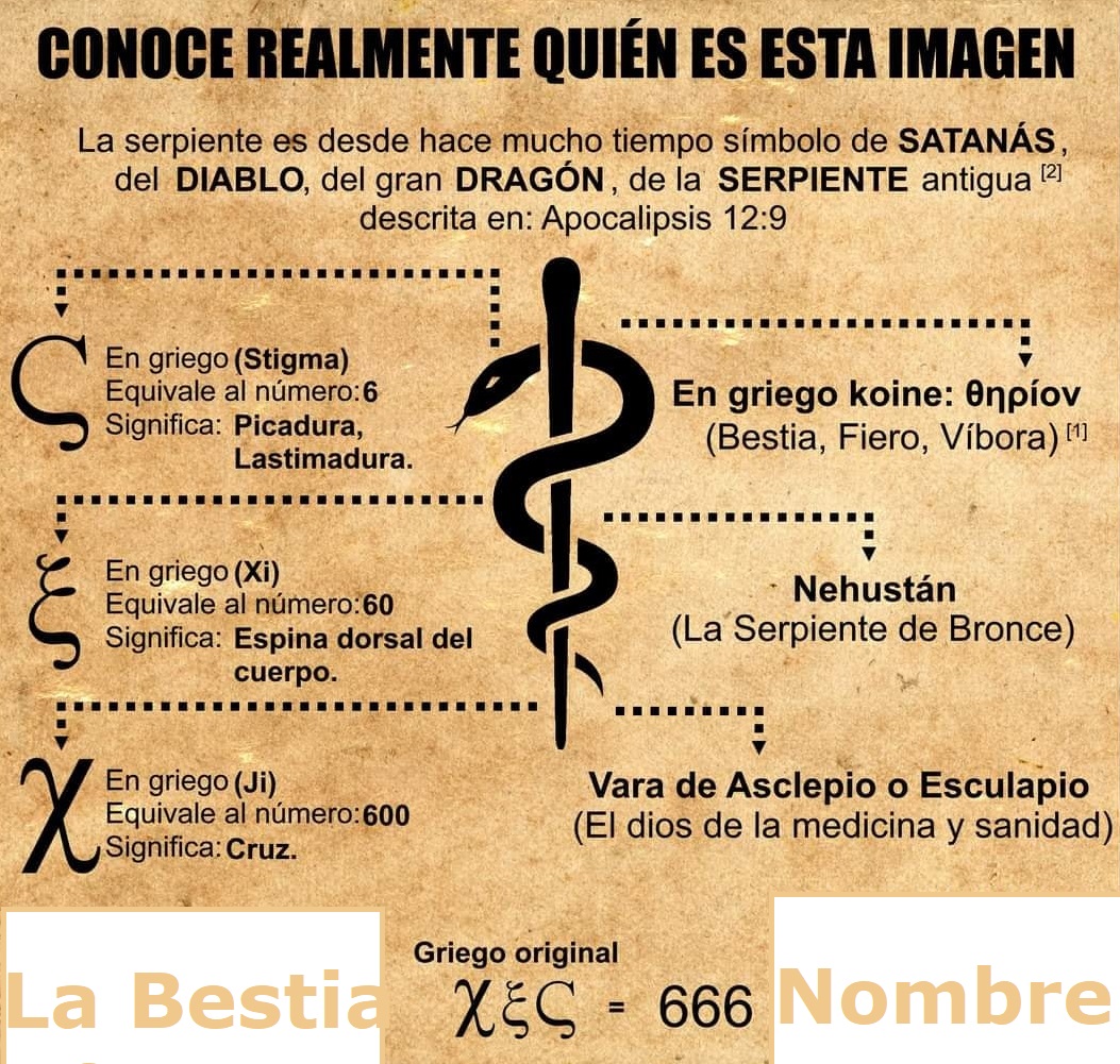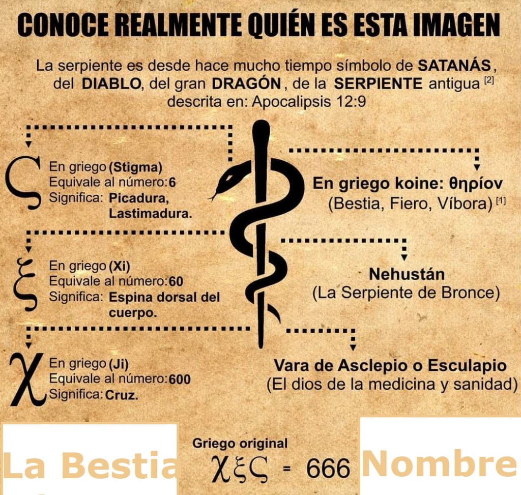 En la mitología griega, la Vara de Asclepio también conocida como el Bastón de Esculapio es una vara entrelazada con serpientes blandida por el falso dios griego Asclepio, asociada con la curación y la medicina. El símbolo se ha seguido utilizando en los tiempos modernos, donde se asocia con la medicina y el cuidado de la salud, pero con frecuencia se confunde con el bastón del dios Hermes , el caduceo. Que es un símbolo que lleva el demonio entre las piernas, una vara rodeada por dos serpientes. Las dos serpientes forman un 8 (símbolo del infinito) y representan la lucha eterna entre fuerzas que pretenden ser equivalentes. Aunque bien sabemos que el demonio ya ha sido derrotado. Según la leyenda romana, la vara era portada por mensajeros como Mercurio, quien, en cierta oportunidad, vio a dos serpientes luchando y las separó pacíficamente con el caduceo. Esto bastaría como advertencia, ver como en casi todas las mitologías los falsos dioses portan una vara con una serpiente. Claramente la biblia nos relata como :