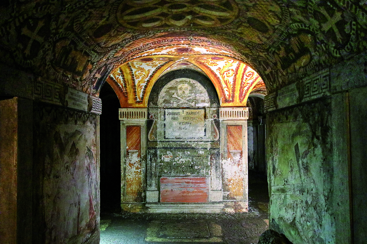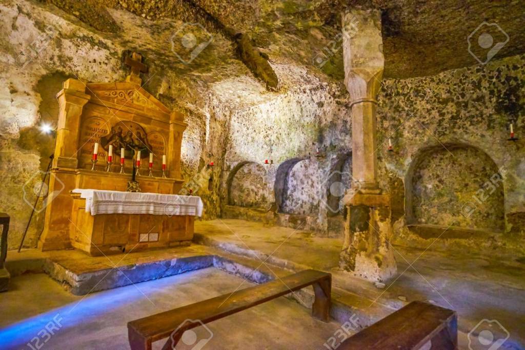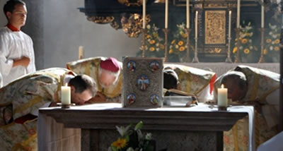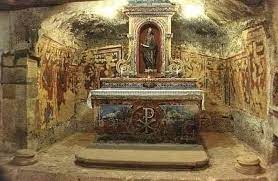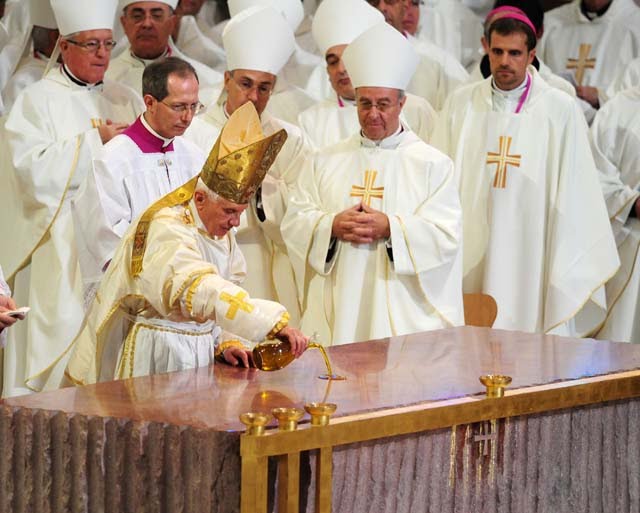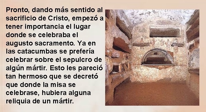 La celebración del sacrificio en las catacumbas, sobre los sepulcros de mármol de los mártires, acostumbró, al empleo de los altares de piedra; el Concilio de Epone (Francia) decretó en el año 509 la prohibición de consagrar con el crisma cualquier altar que no estuviera construido de piedra.