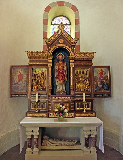 Su base rectangular encierra el cuerpo de un mártir, o sus reliquias. Todos los altares deben ser ungidos como fue ungido el cuerpo de Cristo con mirra y aloes, y ser consagrada por un obispo, para su posterior uso.