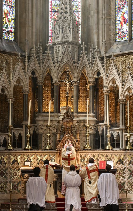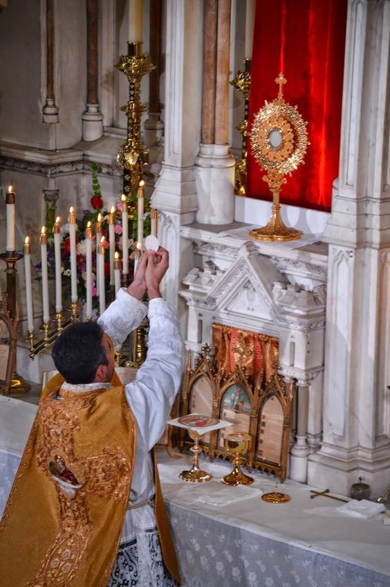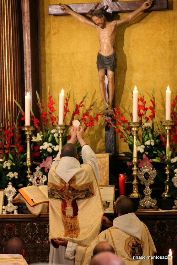 En el altar del Calvario, Jesús, Sumo Sacerdote, hizo la ofrenda de alabanza y acción de gracias más grata a Dios que puede concebirse. Fue tan perfecto este Sacrificio de Cristo, que no puede pensarse otro mayor, mientras los ojos de todos los presentes se fijan en él, esta es la razón por la cual la misa, se celebro siempre mirando a oriente, mirando la cruz, mirando la víctima, el Dios vivo que se ofreció, a si mismo, como ofrenda al padre para la salvación de los creyentes, que acepten que Jesús, es Dios y estén en Su Gracia. Haced esto en Conmemoración Mia.