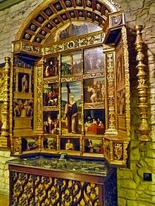 El retablo, cuadro o figura escultórica de índole religiosa que se coloca encima, llegó a constituir una de las primitivas manifestaciones del arte cristiano. Algunos retablos figuran entre las más famosas obras de arte.