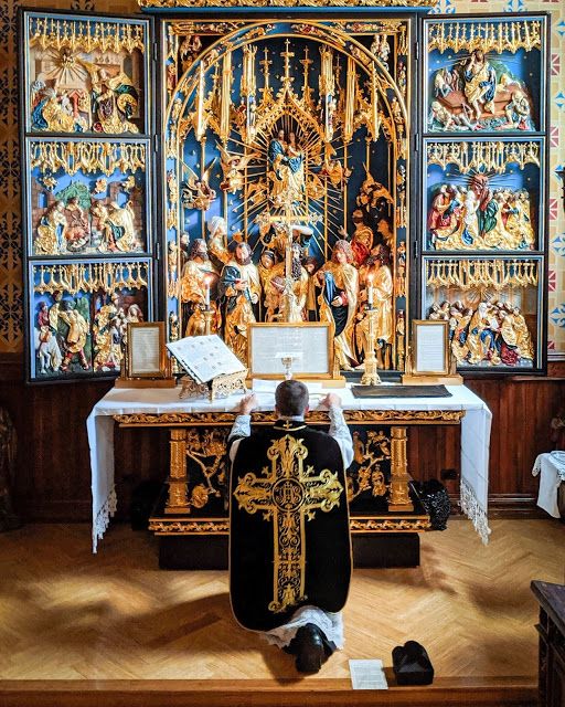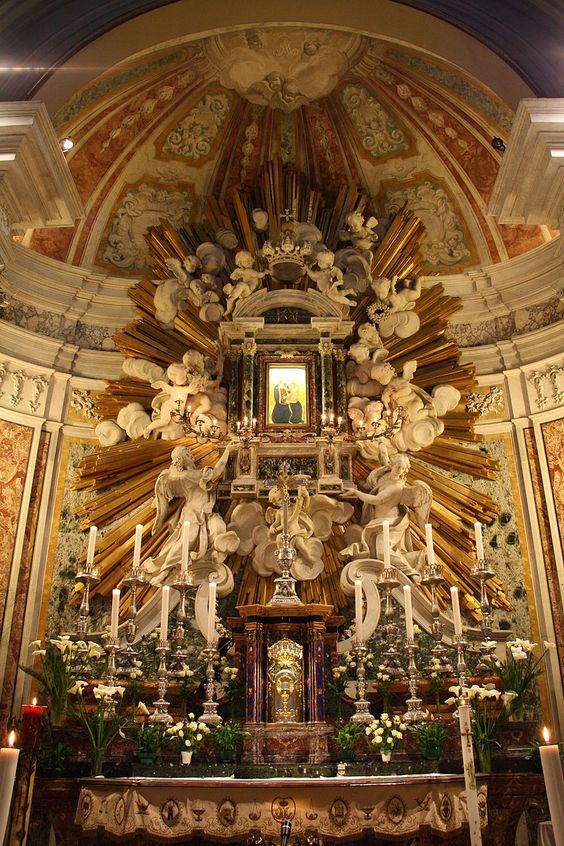 El altar es el Lugar dispuesto para ofrendar el sacrificio incruento de la misa, que el Mesías, celebró el jueves santo, “haced esto en conmemoración mía”, que la Iglesia católica, conserva como depósito de la Fe, el ara o piedra consagrada para la celebración por el sacerdote del santo sacrificio de la misa, representa el cuerpo de Cristo. Así, él es al mismo tiempo, sacerdote, víctima y altar.