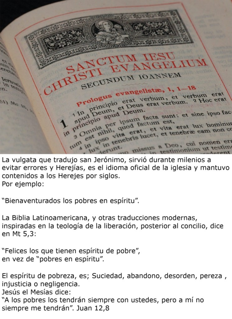 La vulgata que tradujo san Jerónimo, sirvió durante milenios a evitar errores y Herejías, es el idioma oficial de la iglesia y mantuvo contenidos a los Herejes por siglos.