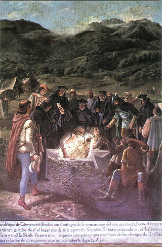 El Cristianismo sufrió por muchos años durante la ocupación de los Moros, pero la devoción a la Madre de Dios se mantuvo secretamente, para aflorar nuevamente después de la liberación. Una gran emoción se experimentó cuando en 1326 el pastor llamado Gil Cordero relató que mientras buscaba una vaca perdida una Señora radiante emergía de entre los arbustos. Después de indicarle el lugar que debía excavar para desenterrar el tesoro, ella pidió que se le construyera una capilla.