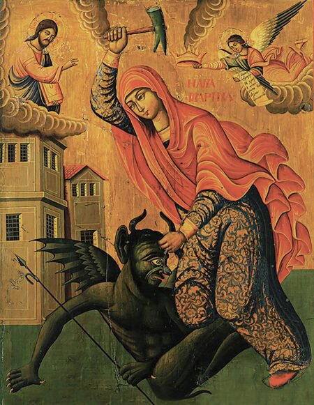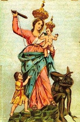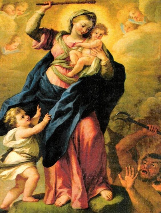 «Ella te aplastará la cabeza» (Gn 3,15), le anuncia Yahvé a la serpiente: la nueva Eva, su linaje… La Tradición ha considerado siempre ese versículo del Génesis como una profecía mariana, y por eso la iconografía cristiana representa con frecuencia al demonio bajo los pies de la Santísima Virgen.