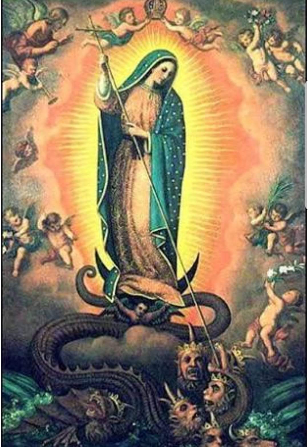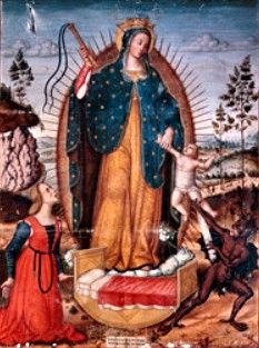 En Mexico 9 millones de antropófagos que hacían sacrificios a la serpiente emplumada, se convirtieron ante la aparición de Guadalupe, pisando la serpiente.