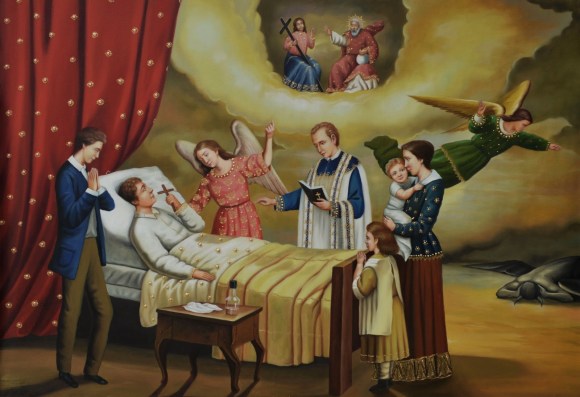 Llamó a dos vecinos, sus «camaradas» en el mal, y les pidió perdón por los horribles ejemplos que les había dado. Luego, llorando, abrazó a su esposa y le pidió perdón por su arrogancia que le había durado toda la vida. Cuando el sacerdote volvió con Jesús-Hostia para el santo Viático, el arrepentido reunió sus últimas fuerzas y se arrodilló junto al lecho y recibió, en esa posición, todo tembloroso, a Jesús Pan de Vida Eterna.