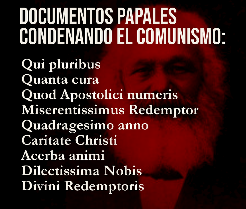 Pío IX, dos años antes de la publicación del, “Manifiesto” de Marx y Engels, ya había calificado las doctrinas de estos últimos, como “contrarias al derecho natural” e Intrínsecamente Perversas (Encíclica Qui Pluribus, 1846).