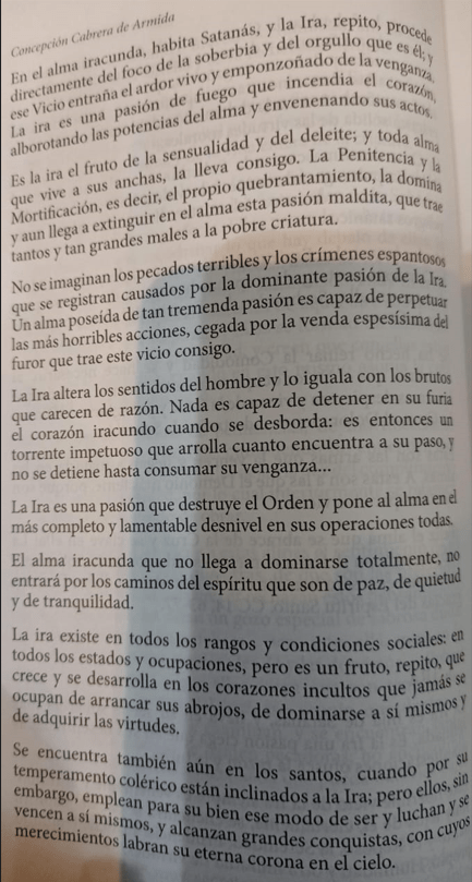 ¿qué peligros no corre, si trocados los nombres, y cambiados los trajes, todo se le ofrece disfrazado, trastornado? si sus ojos miran al través de engañosos prismas, que pintan con galanos colores y apacibles formas, ¿la negrura y la monstruosidad? Los mayores peligros de un corazón puro no están en el brutal aliciente de las pasiones groseras sino en aquellos sentimientos que encantan por su delicadeza y seducen con su ternura; el miedo no entra en las almas nobles sino con el dictado de prudencia; la codicia no se introduce en los pechos generosos sino con el título de economía previsora; la venganza se disfraza con el manto de la justicia; el furor se apellida santa indignación; la pereza invoca en su auxilio la necesidad del descanso; y la roedora envidia al destrozar reputaciones, al empeñarse en ofuscar con su aliento impuro los resplandores de un mérito eminente, habla de amor á la verdad, de imparcialidad, de lo mucho que conviene precaverse contra una admiracion ignorante ó un entusiasmo infantil.
