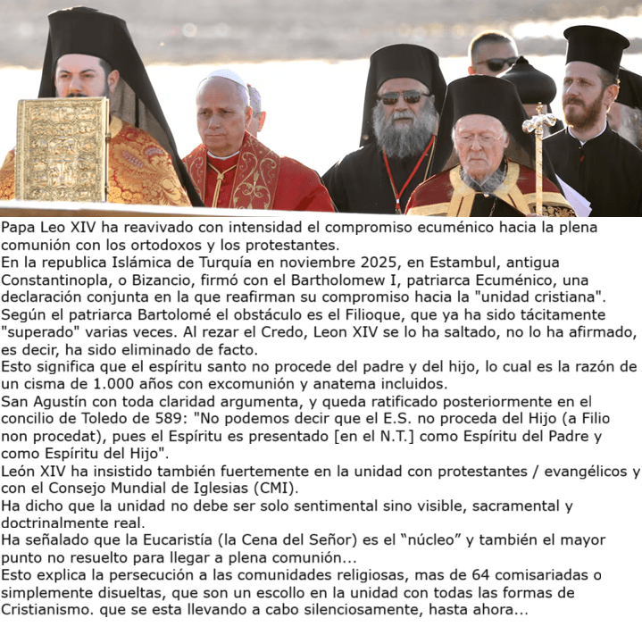 Según el patriarca Bartolomé el obstáculo es el Filioque, que ya ha sido tácitamente «superado» varias veces. Al rezar el Credo, Leon XIV se lo ha saltado, no lo ha afirmado, es decir, ha sido eliminado de facto.