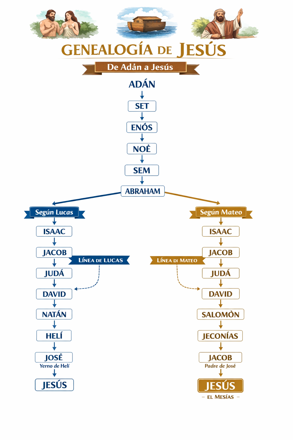 San Mateo nos entrega la genealogía de Jesús para demostrar que Él es el Mesías prometido, descendiente legítimo de Abrahán y de David. La genealogía es legal, no biológica, pues se presenta a través de San José, padre adoptivo de Jesús, conforme a la Ley judía. Así se prueba que Cristo hereda jurídicamente las promesas mesiánicas y el derecho al trono de David.