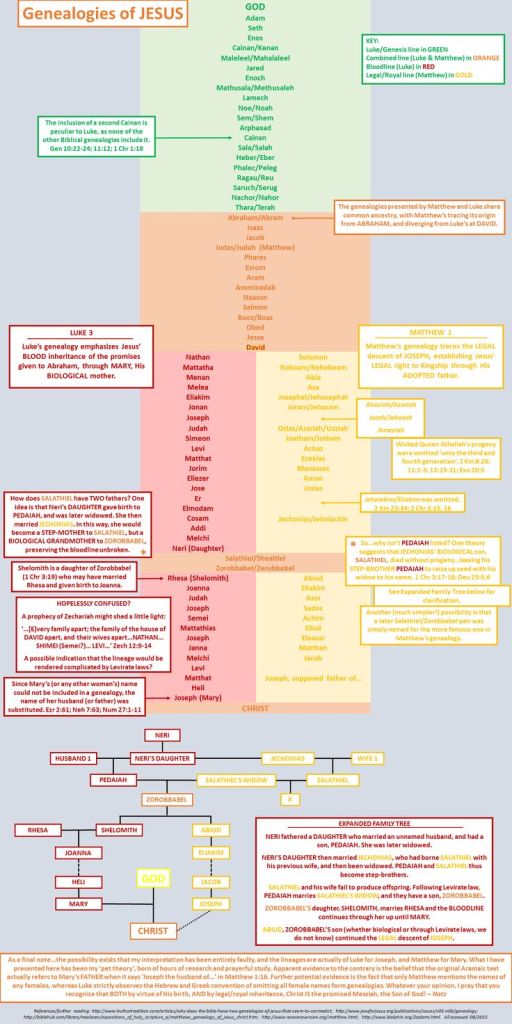 Los Evangelios presentan dos genealogías porque quieren enseñar dos verdades complementarias sobre Jesús.
